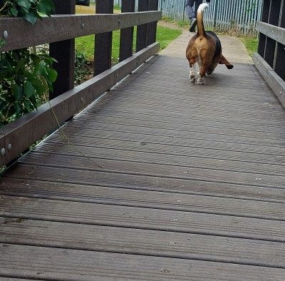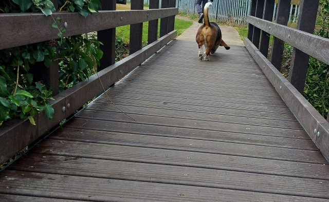 Interesting to see a local bridge inspector paying close attention to recycled plastic decking boards (having also just carried out a ‘moisture test’)