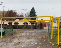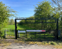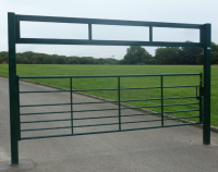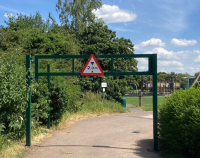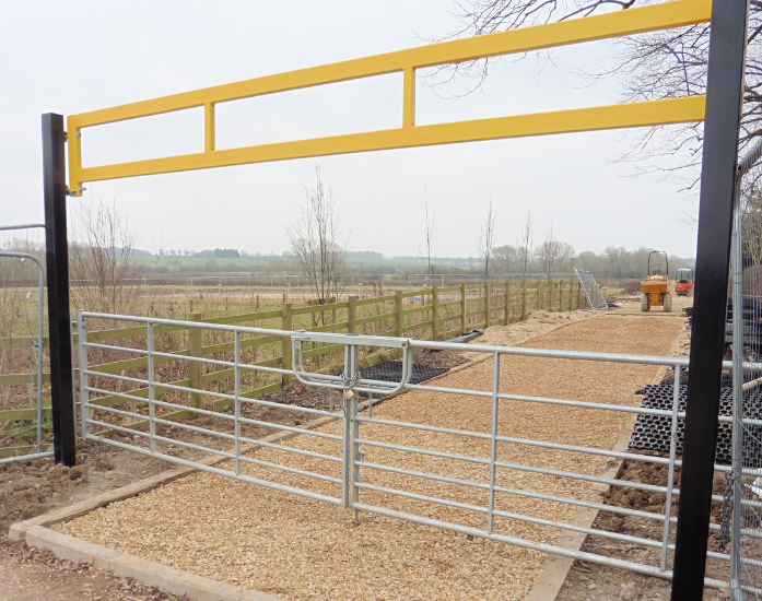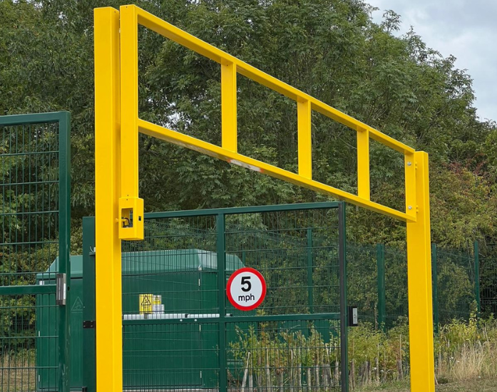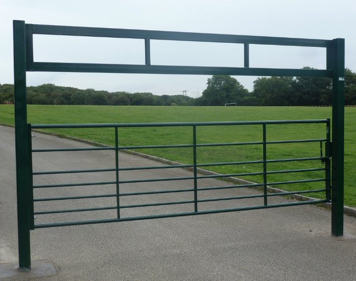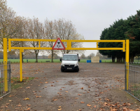 The height restrictor is padlocked in position, allowing authorised access only; a vehicle access gate or lower barrier leaf can be incorporated if required.