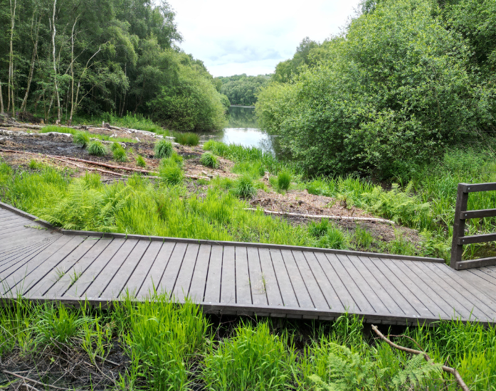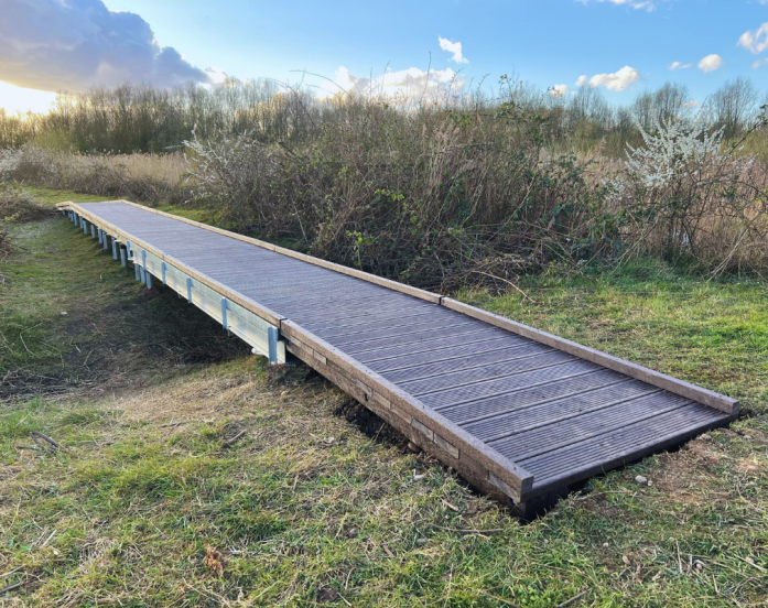 Re-Life fully recycled plastic boardwalk systems are built entirely from 100% recycled plastic (and a few steel fixings). Posts, joists and deck boards are all designed to handle constant moisture, ground movement and heavy footfall without rotting, warping or splitting. They are particularly well suited to wetlands, nature reserves, coastal paths and high-use public access routes.