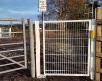 Manufactured from heavy-duty steel and finished with a hot-dipped galvanised coating plus a white polyester powder top coat, this pedestrian gate is built to last in high-traffic, outdoor environments. It offers excellent weather resistance and long-term corrosion protection — ideal for rail infrastructure and countryside access points.