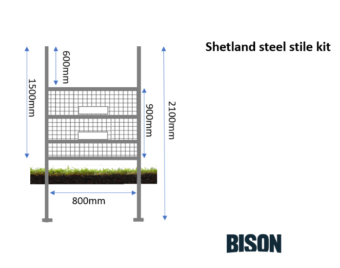 The Shetland Steel pedestrian stile kit with angled steps. Supplied ‘flat pack’ including 2 step plates and fixings for easy installation.